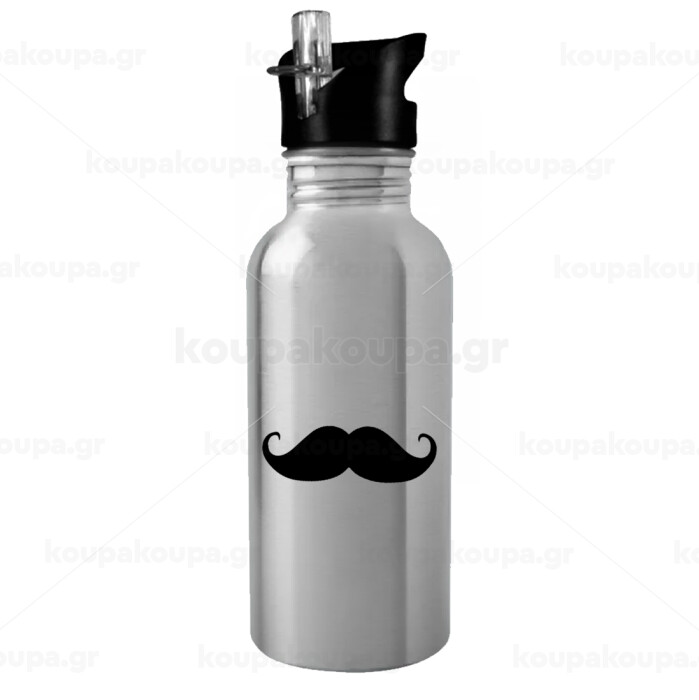 Μουστάκι, Παγούρι νερού Ασημένιο με καλαμάκι, ανοξείδωτο ατσάλι 600ml