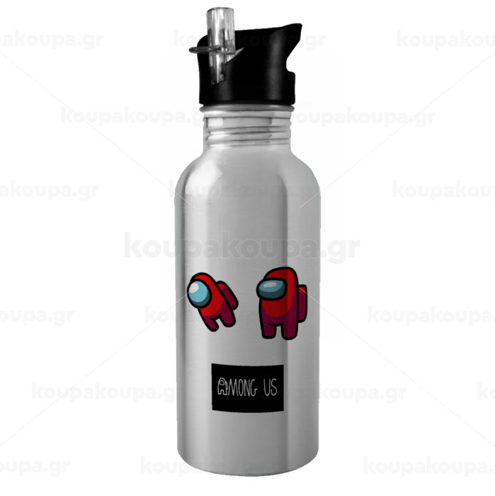 Among US, Παγούρι νερού Ασημένιο με καλαμάκι, ανοξείδωτο ατσάλι 600ml