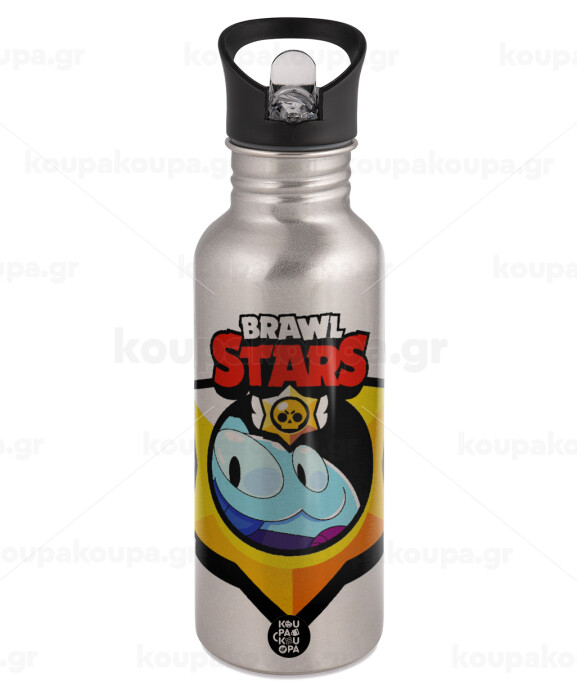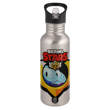Brawl Stars Squeak, Παγούρι νερού Ασημένιο με καλαμάκι, ανοξείδωτο ατσάλι 600ml