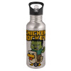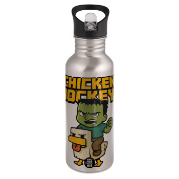 Chicken Jockey, Παγούρι νερού Ασημένιο με καλαμάκι, ανοξείδωτο ατσάλι 600ml