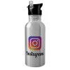 Instagram, Παγούρι νερού Ασημένιο με καλαμάκι, ανοξείδωτο ατσάλι 600ml