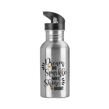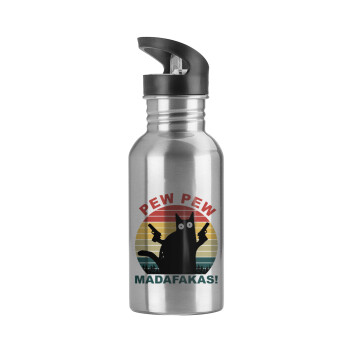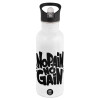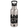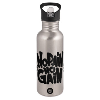 No pain no gain, Παγούρι νερού Ασημένιο με καλαμάκι, ανοξείδωτο ατσάλι 600ml