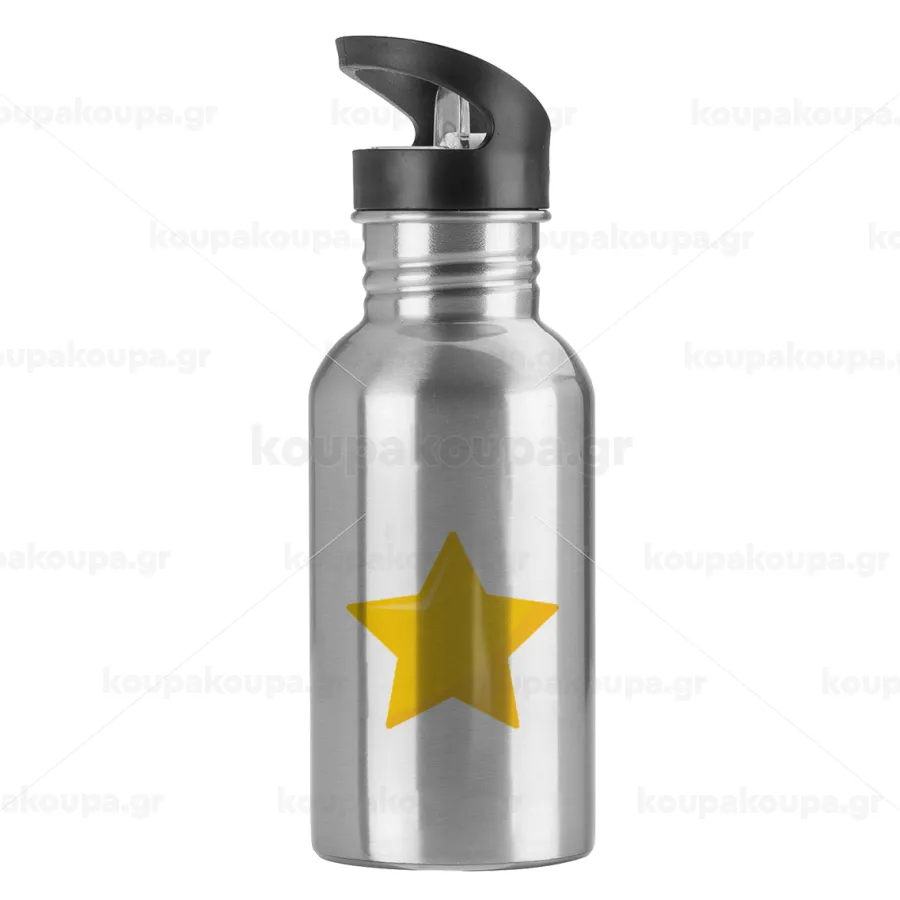 Star, Παγούρι νερού Ασημένιο με καλαμάκι, ανοξείδωτο ατσάλι 600ml