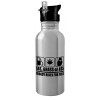 Gas, Grass or Ass, Παγούρι νερού Ασημένιο με καλαμάκι, ανοξείδωτο ατσάλι 600ml