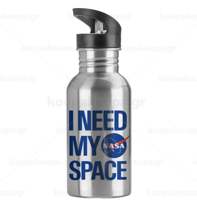 I need my space, Παγούρι νερού Ασημένιο με καλαμάκι, ανοξείδωτο ατσάλι 600ml
