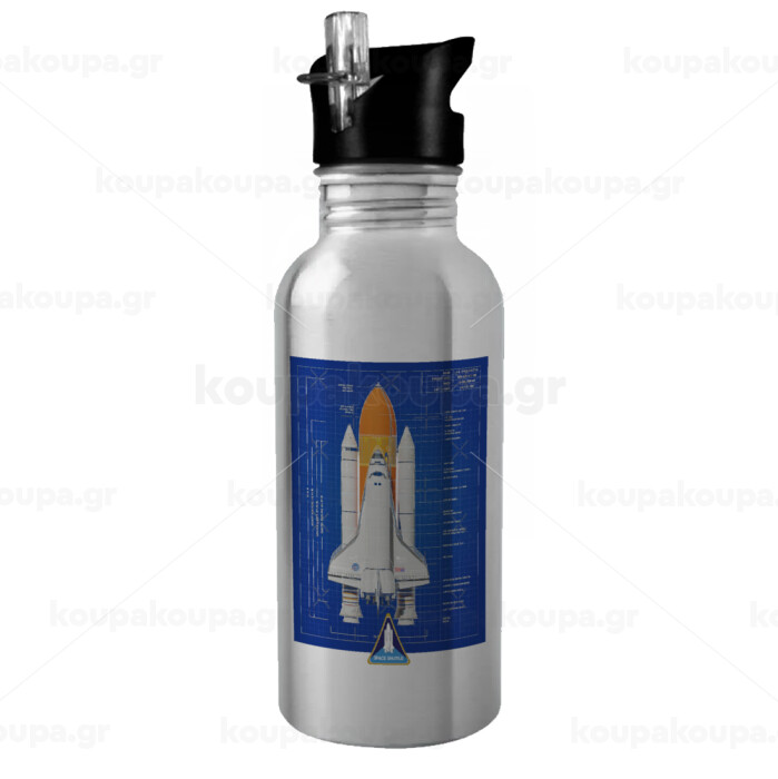 Nasa Space Shuttle, Παγούρι νερού Ασημένιο με καλαμάκι, ανοξείδωτο ατσάλι 600ml