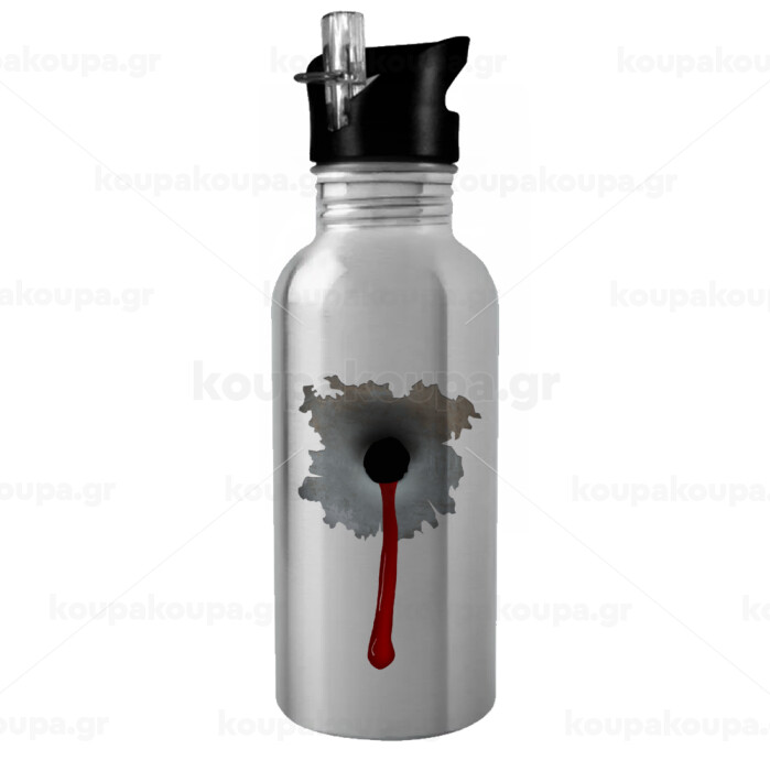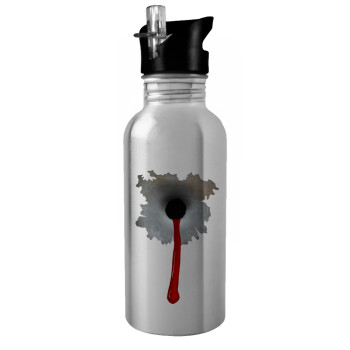 Bullet holes, Παγούρι νερού Ασημένιο με καλαμάκι, ανοξείδωτο ατσάλι 600ml