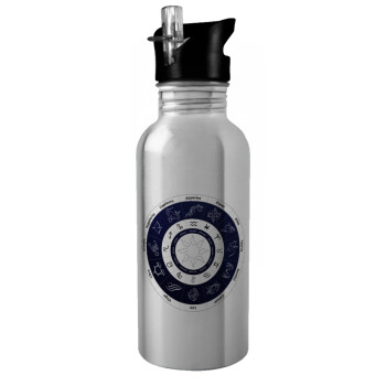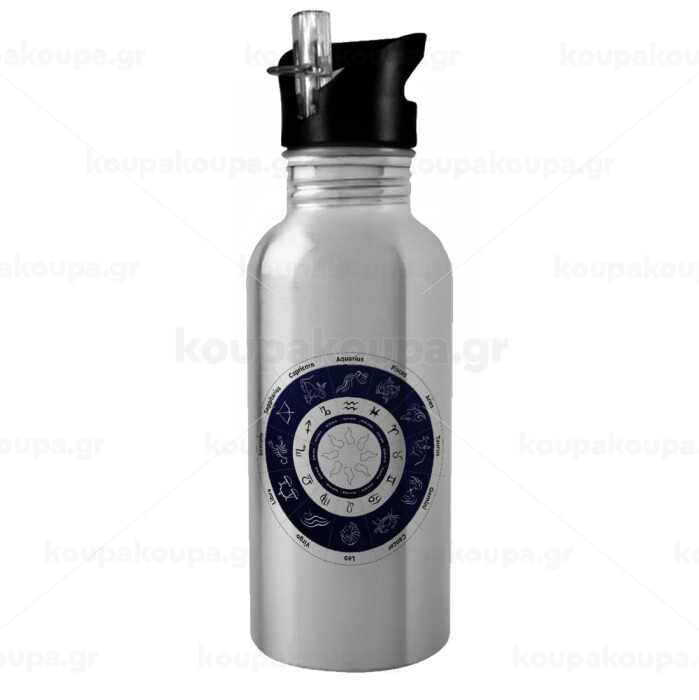 Ζωδιακός κύκλος, Παγούρι νερού Ασημένιο με καλαμάκι, ανοξείδωτο ατσάλι 600ml
