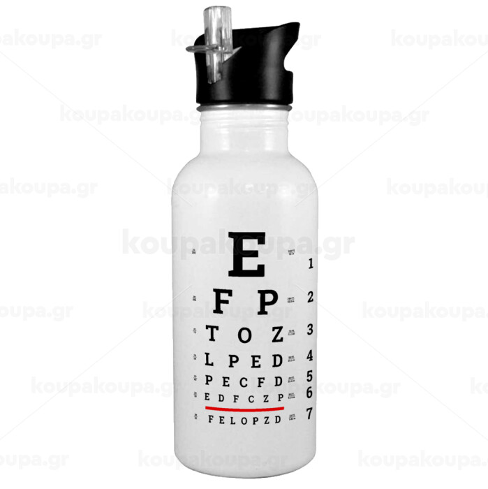 EYE test chart, Παγούρι νερού Λευκό με καλαμάκι, ανοξείδωτο ατσάλι 600ml