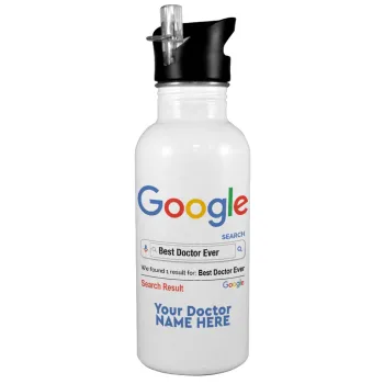 Searching for Best Doctor Ever..., Παγούρι νερού Λευκό με καλαμάκι, ανοξείδωτο ατσάλι 600ml