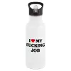 I love my fucking job, Παγούρι νερού Λευκό με καλαμάκι, ανοξείδωτο ατσάλι 600ml