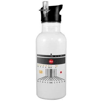 Leica Lens, Παγούρι νερού Λευκό με καλαμάκι, ανοξείδωτο ατσάλι 600ml