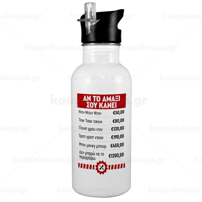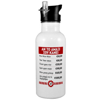Annoying Noise in Car, Παγούρι νερού Λευκό με καλαμάκι, ανοξείδωτο ατσάλι 600ml