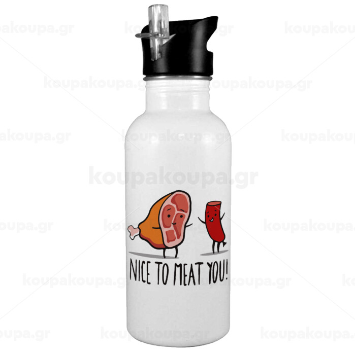 Nice to MEAT you, Παγούρι νερού Λευκό με καλαμάκι, ανοξείδωτο ατσάλι 600ml