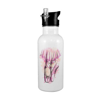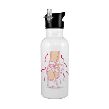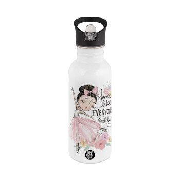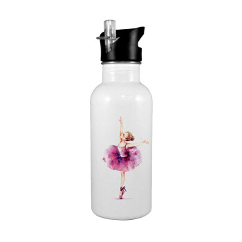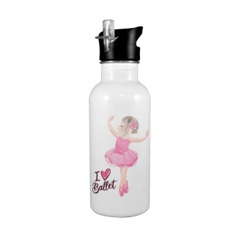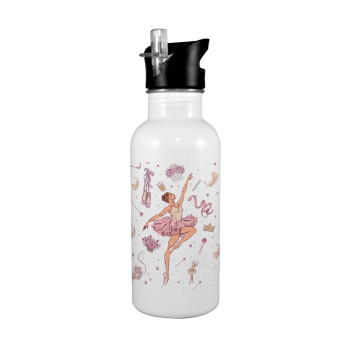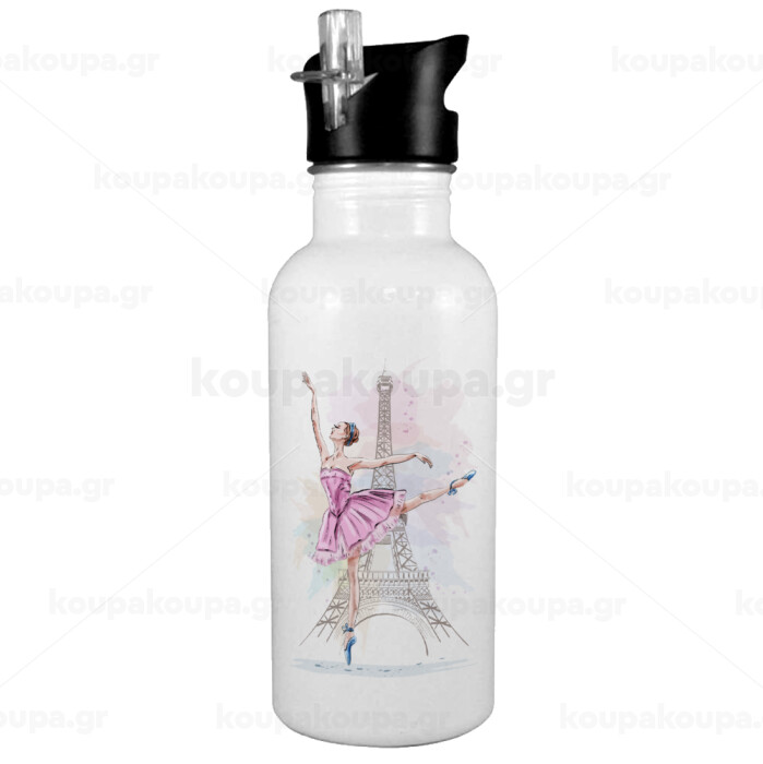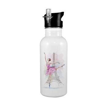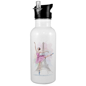 Ballerina in Paris, Παγούρι νερού Λευκό με καλαμάκι, ανοξείδωτο ατσάλι 600ml