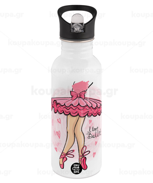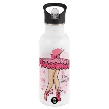 I Love Ballet, Παγούρι νερού Λευκό με καλαμάκι, ανοξείδωτο ατσάλι 600ml