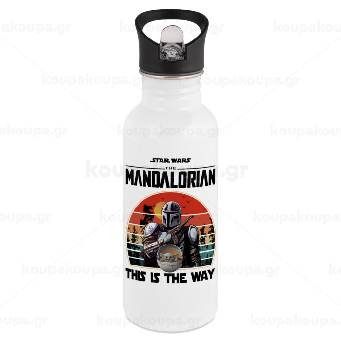 Mandalorian, Παγούρι νερού Λευκό με καλαμάκι, ανοξείδωτο ατσάλι 600ml