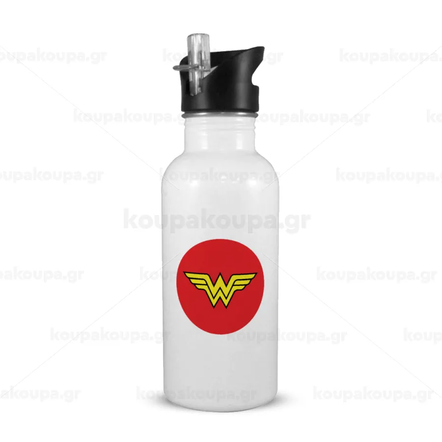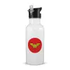 Wonder woman, Παγούρι νερού Λευκό με καλαμάκι, ανοξείδωτο ατσάλι 600ml