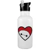 Baymax heart, Παγούρι νερού Λευκό με καλαμάκι, ανοξείδωτο ατσάλι 600ml