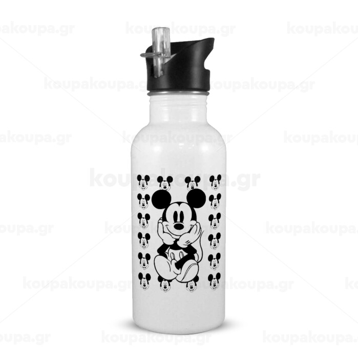 Mickey, Παγούρι νερού Λευκό με καλαμάκι, ανοξείδωτο ατσάλι 600ml