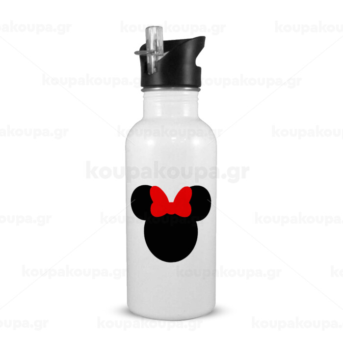 Minnie head, Παγούρι νερού Λευκό με καλαμάκι, ανοξείδωτο ατσάλι 600ml