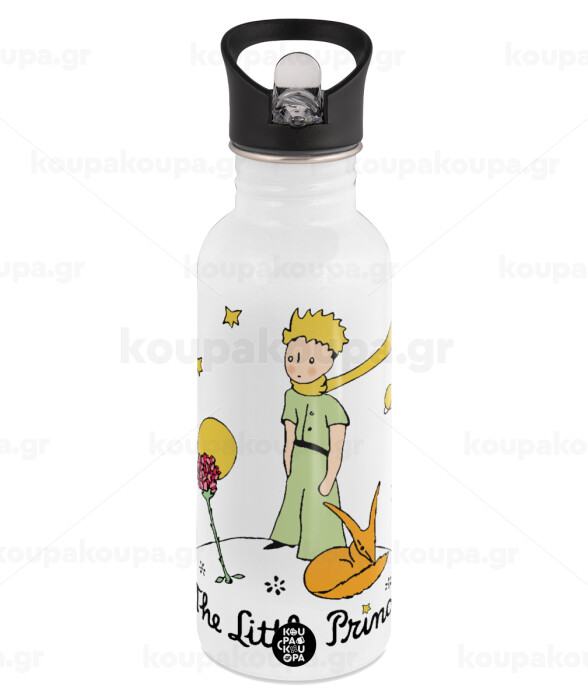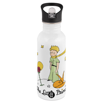 Ο μικρός πρίγκιπας classic, Παγούρι νερού Λευκό με καλαμάκι, ανοξείδωτο ατσάλι 600ml