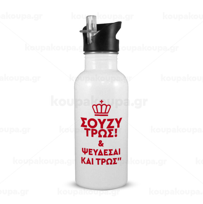 Σούζυ και ψεύδεσαι και τρως, Παγούρι νερού Λευκό με καλαμάκι, ανοξείδωτο ατσάλι 600ml