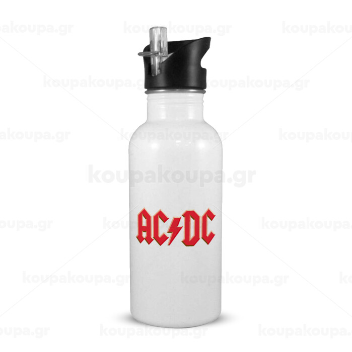AC/DC, Παγούρι νερού Λευκό με καλαμάκι, ανοξείδωτο ατσάλι 600ml