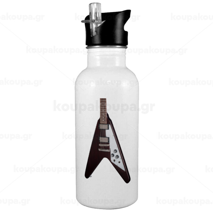 Guitar flying V, Παγούρι νερού Λευκό με καλαμάκι, ανοξείδωτο ατσάλι 600ml