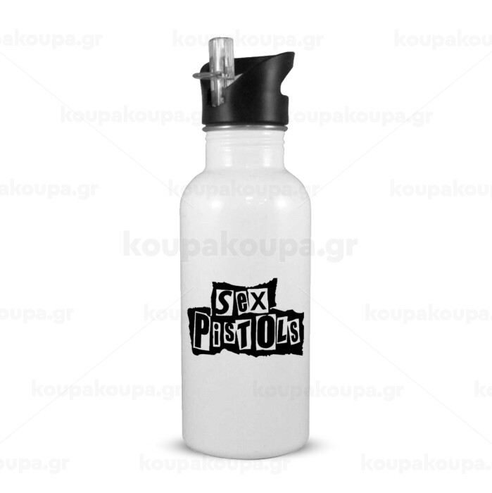Sex Pistols, Παγούρι νερού Λευκό με καλαμάκι, ανοξείδωτο ατσάλι 600ml