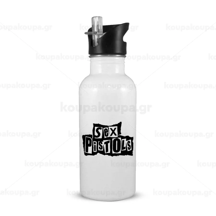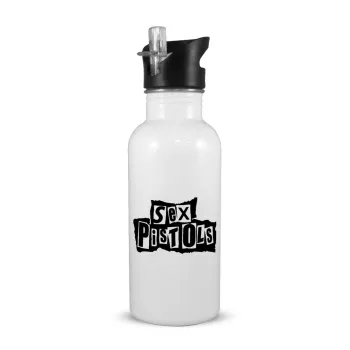 Sex Pistols, Παγούρι νερού Λευκό με καλαμάκι, ανοξείδωτο ατσάλι 600ml