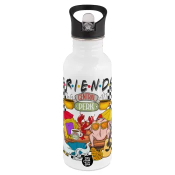 Τα φιλαράκια, Παγούρι νερού Λευκό με καλαμάκι, ανοξείδωτο ατσάλι 600ml