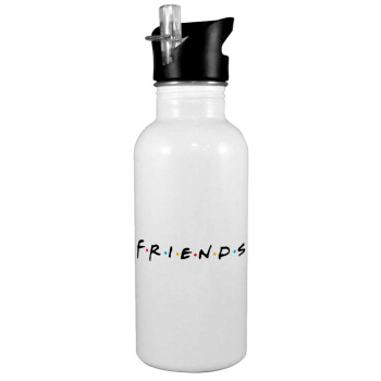 Friends, Παγούρι νερού Λευκό με καλαμάκι, ανοξείδωτο ατσάλι 600ml