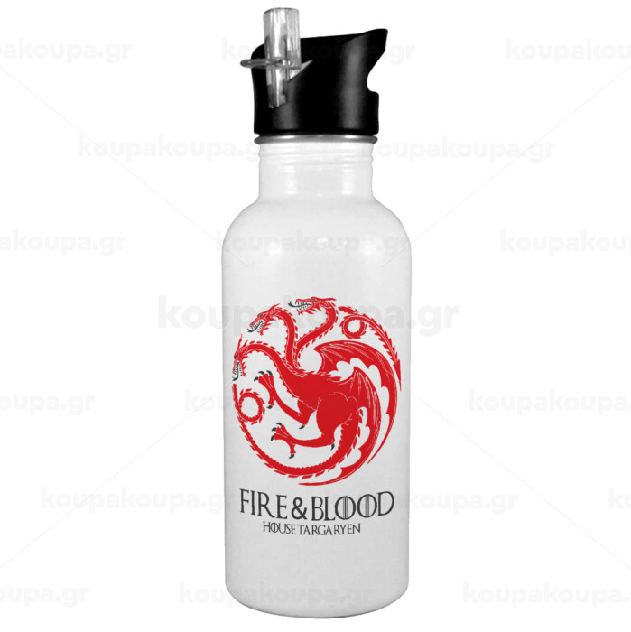 GOT House Targaryen, Fire Blood, Παγούρι νερού Λευκό με καλαμάκι, ανοξείδωτο ατσάλι 600ml
