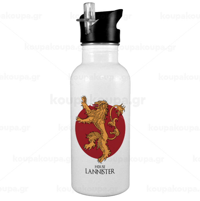 House Lannister GOT, Παγούρι νερού Λευκό με καλαμάκι, ανοξείδωτο ατσάλι 600ml