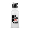 La casa de papel, Παγούρι νερού Λευκό με καλαμάκι, ανοξείδωτο ατσάλι 600ml
