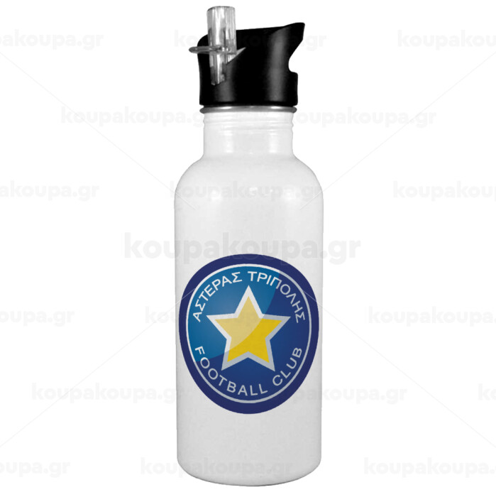 Αστέρας Τρίπολης, Παγούρι νερού Λευκό με καλαμάκι, ανοξείδωτο ατσάλι 600ml