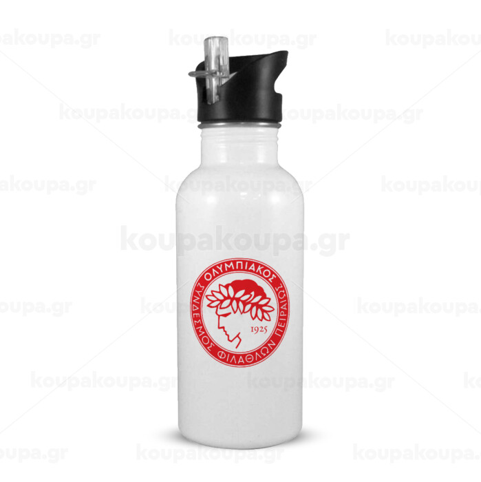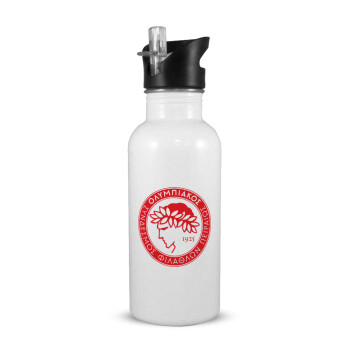 Ολυμπιακός, Παγούρι νερού Λευκό με καλαμάκι, ανοξείδωτο ατσάλι 600ml