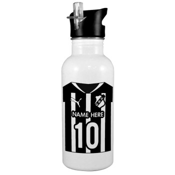 ΟΦΗ εμφάνιση, Παγούρι νερού Λευκό με καλαμάκι, ανοξείδωτο ατσάλι 600ml