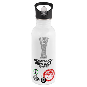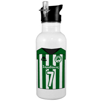 Παναθηναϊκός εμφάνιση, Παγούρι νερού Λευκό με καλαμάκι, ανοξείδωτο ατσάλι 600ml