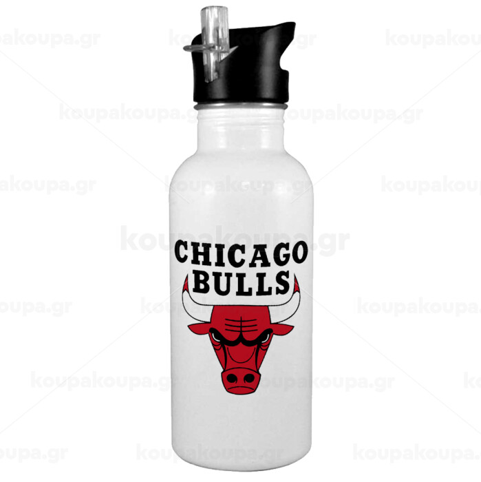 Chicago Bulls, Παγούρι νερού Λευκό με καλαμάκι, ανοξείδωτο ατσάλι 600ml