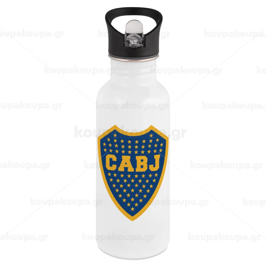 Club Atlético Boca Juniors, Παγούρι νερού Λευκό με καλαμάκι, ανοξείδωτο ατσάλι 600ml