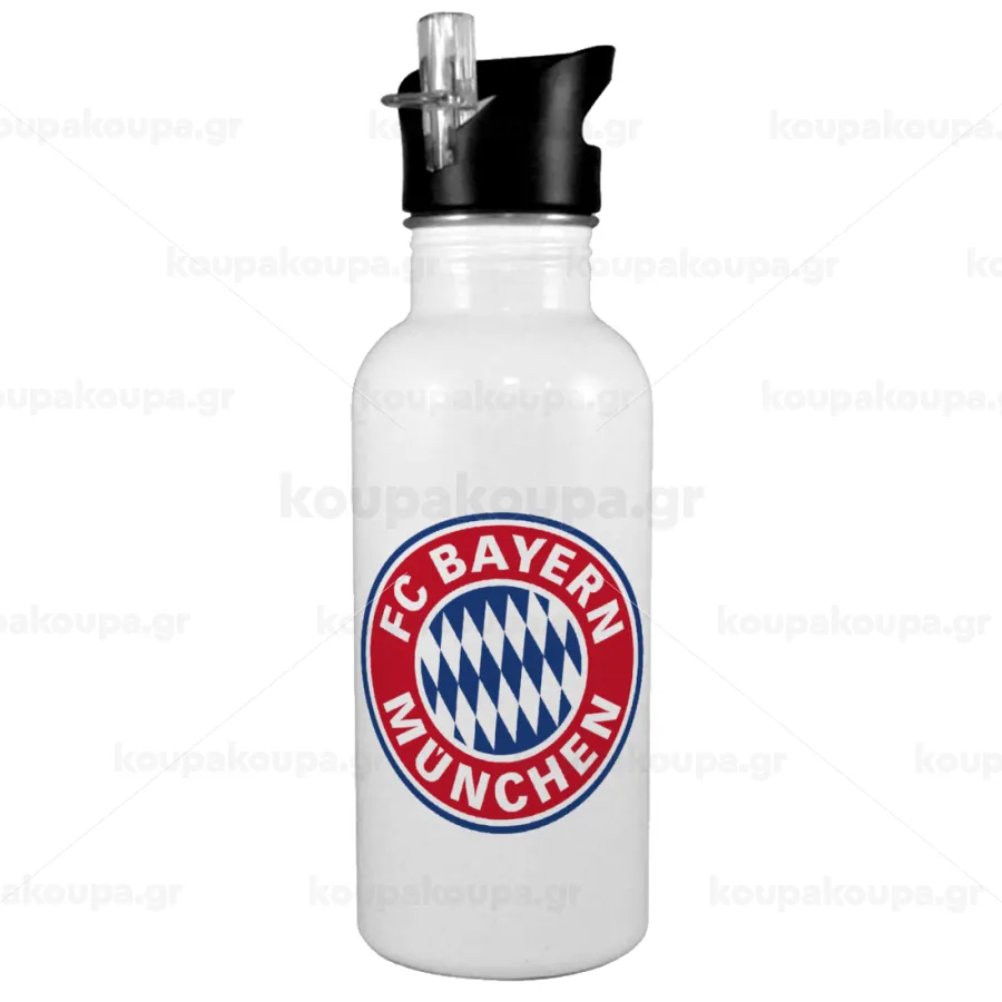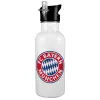 FC Bayern Munich, Παγούρι νερού Λευκό με καλαμάκι, ανοξείδωτο ατσάλι 600ml