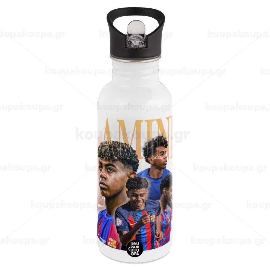 lamine yamal FCB, Παγούρι νερού Λευκό με καλαμάκι, ανοξείδωτο ατσάλι 600ml