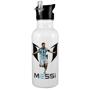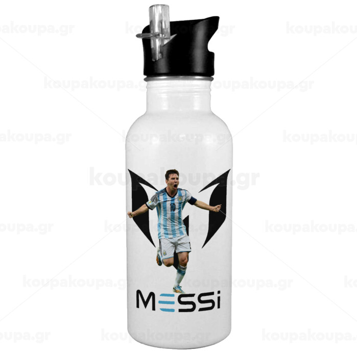 Λιονέλ Μέσι, Leo Messi, Παγούρι νερού Λευκό με καλαμάκι, ανοξείδωτο ατσάλι 600ml