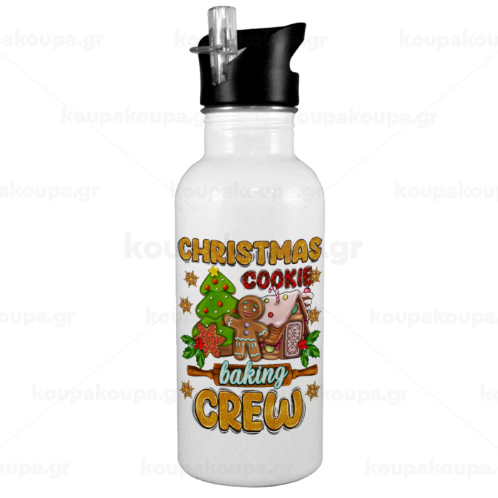 Christmas Cookie Baking Crew, Παγούρι νερού Λευκό με καλαμάκι, ανοξείδωτο ατσάλι 600ml