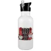 Ho ho ho, Παγούρι νερού Λευκό με καλαμάκι, ανοξείδωτο ατσάλι 600ml