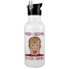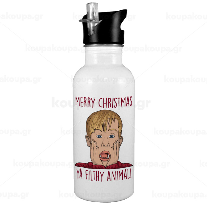 home alone, Merry Christmas ya filthy animal, Παγούρι νερού Λευκό με καλαμάκι, ανοξείδωτο ατσάλι 600ml
