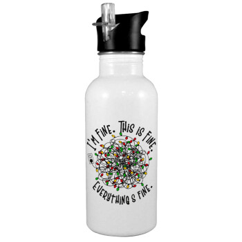 It's Fine I'm Fine Everything Is Fine, Παγούρι νερού Λευκό με καλαμάκι, ανοξείδωτο ατσάλι 600ml