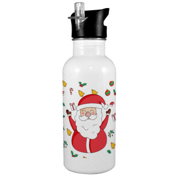 Santa Claus gifts, Παγούρι νερού Λευκό με καλαμάκι, ανοξείδωτο ατσάλι 600ml
